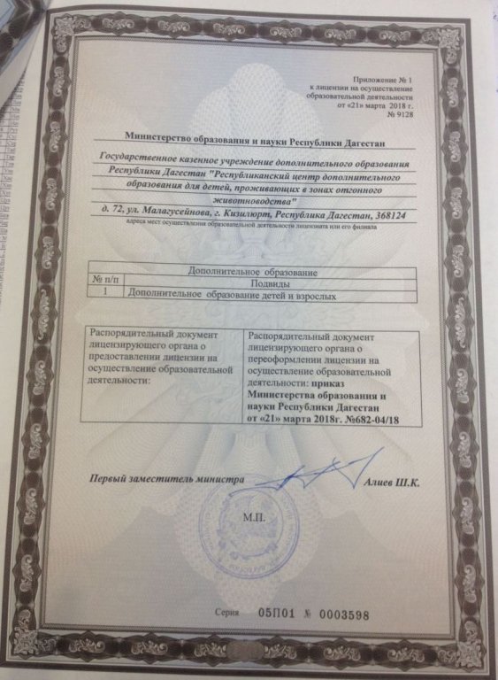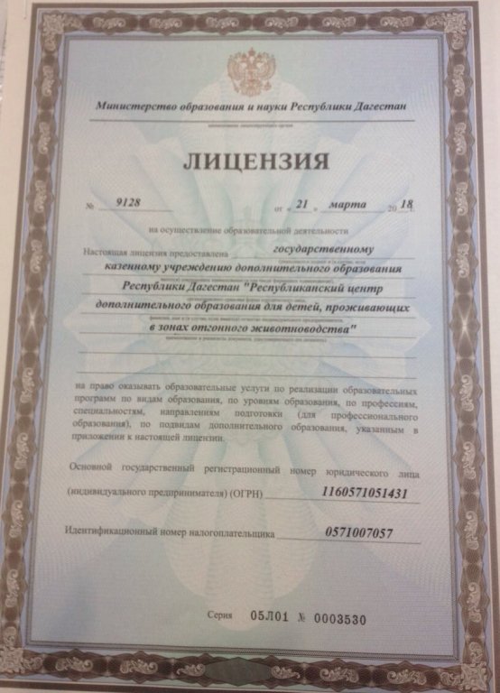 | Полное наименование образовательной организации* | Государственное казенное учреждение дополнительного образования Республики Дагестан "Республиканский центр дополнительного образования для детей, проживающих в зонах отгонного животноводства". |